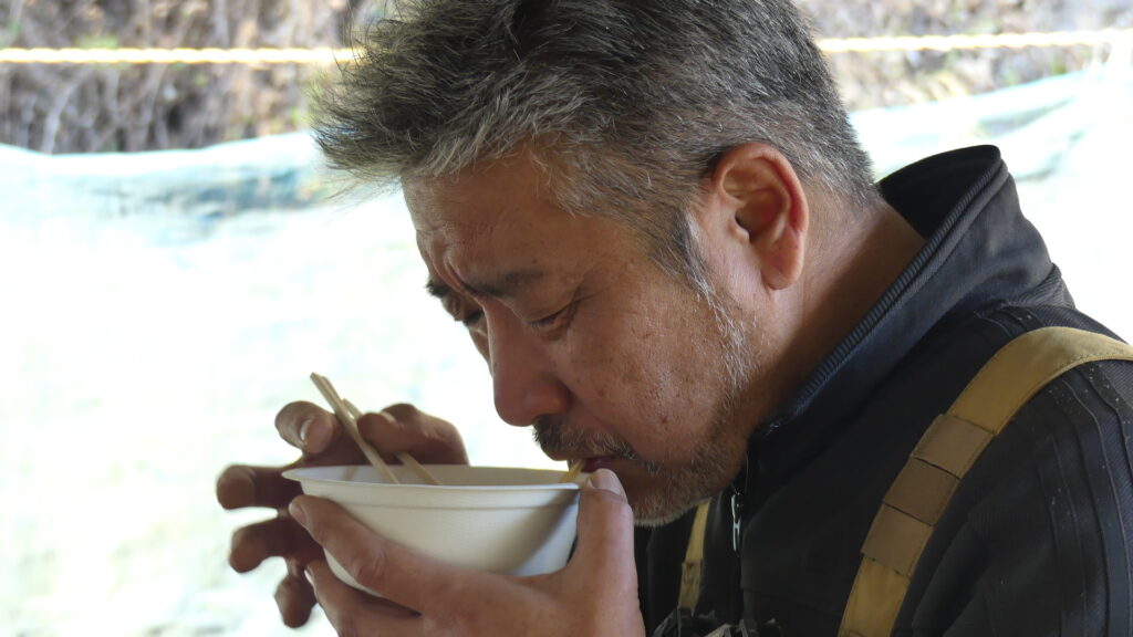 うまい!外で食べる熱々のおでんは最高ですね!