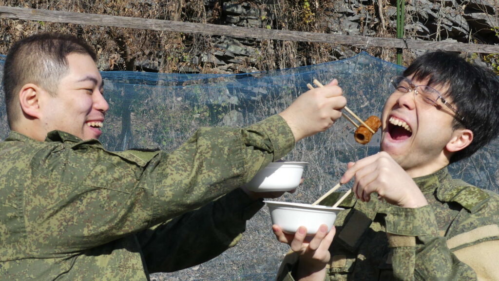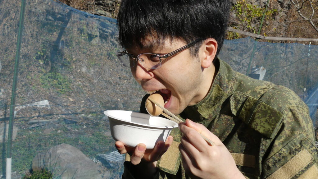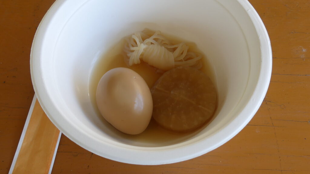 うまい!外で食べる熱々のおでんは最高ですね!