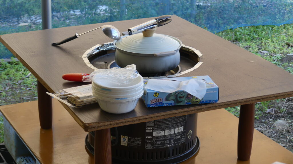 食中毒が怖いので基本的に食べ物(カップ麺を除く)を振る舞ったりはしないんですけど、常連さんからこんな感じのテーブルとストーブをいただいたので・・・