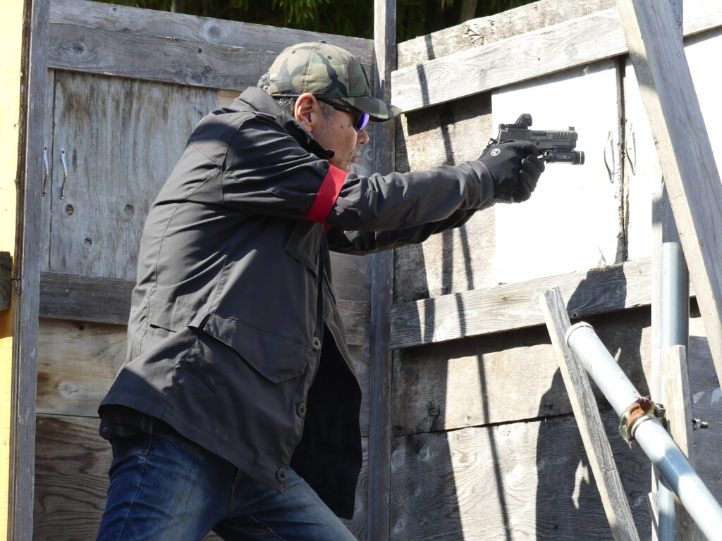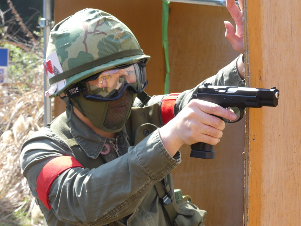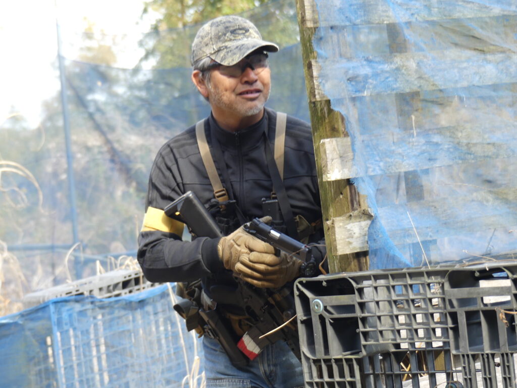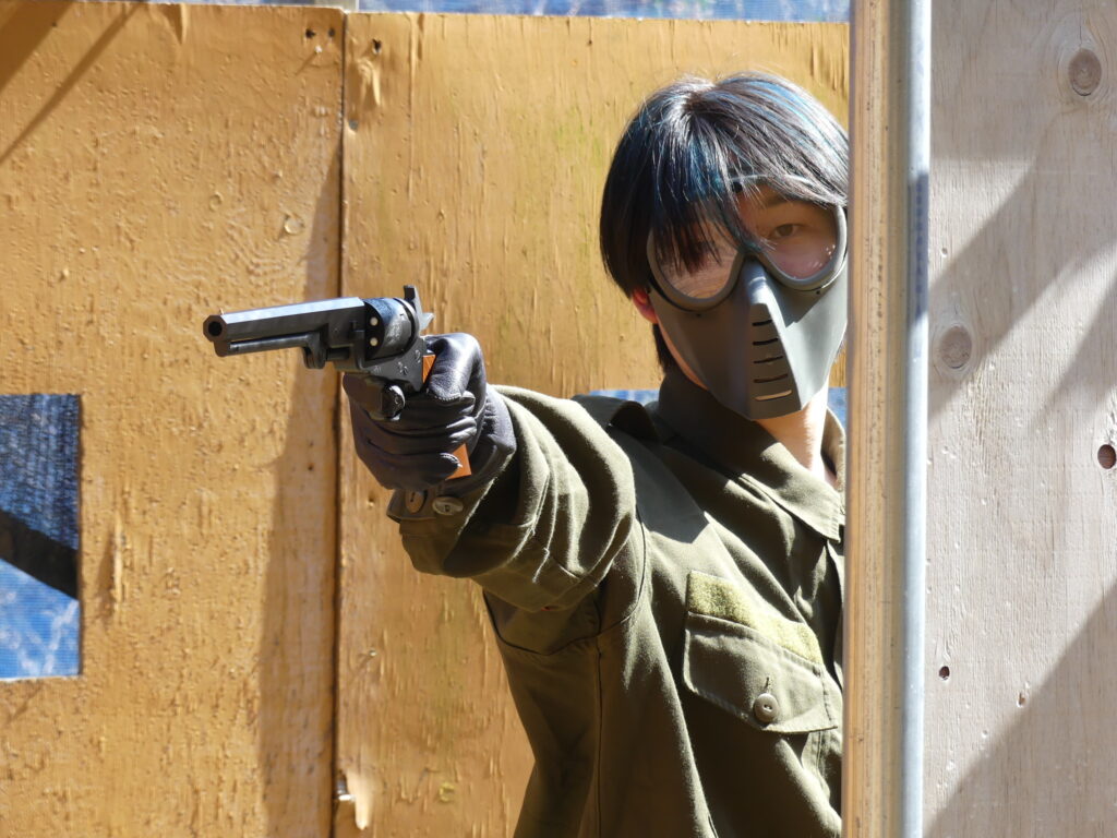 鉄砲隊の陰に隠れてましたが、これまた珍しいデザインの銃を持ってる人がいるなぁと思ったら、少し前に東京マルイさんから発売された『M1851NAVY』でした。